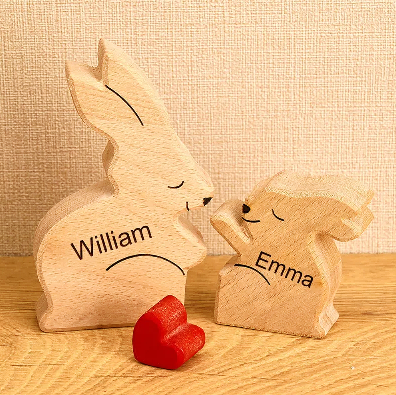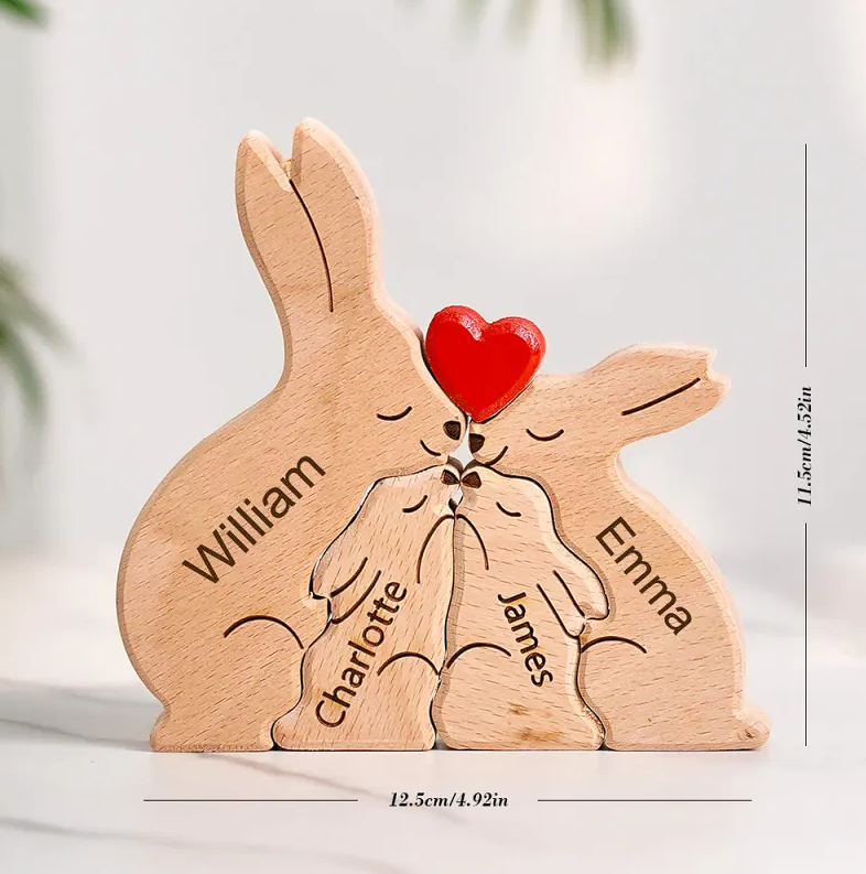 Påskekanin Puslespil – Gave til familien – Personliggjort træpuslespil
